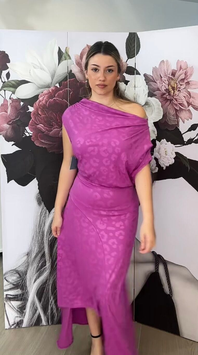 Vestido asimètrico fucsia
